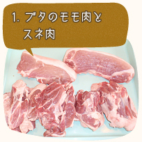 1.ブタバラ肉を(塩、砂糖、粗コショー)全体にぬる